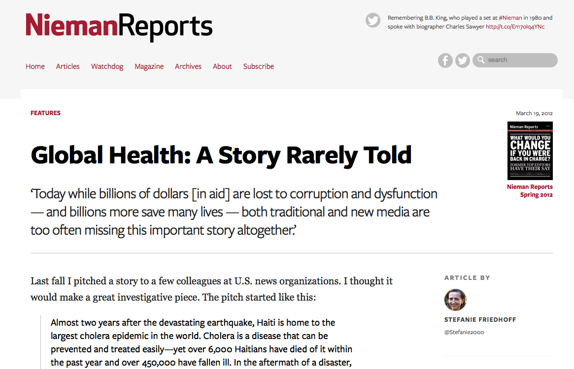 Nieman Reports, Spring 2012: Global Health: A Story Rarely Told